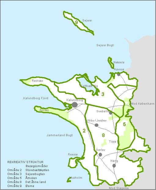 I den forbindelse viderefører Kalundborg Kommune i hovedtræk den inddeling i turistmæssige delområder, som blev introduceret af det tidligere Vestsjællands Amt i regionplanen. Inddelingen i delområder svarer til en identificering af forskellige områder, som har væsentligt forskellige turistmæssige kvaliteter og som rummer en forskellig grad af robusthed over for udvikling. Se nedenfor.