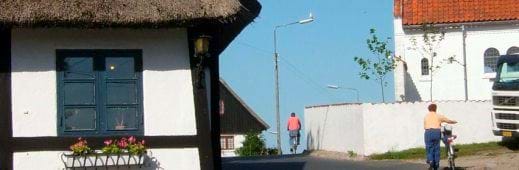 5.3.4 Ny bebyggelse skal indordnes landsbyens fysiske struktur og landområdets byggeskik. Landsbyhuse skal som udgangspunkt opføres med en taghældning på 40-50 grader og udføres som længehuse. Opførelse af mere end 5-6 landsbyhuse vil forudsætte lokalplanlægning, der sikrer den nødvendige tilpasning til omgivelserne.