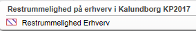 | Planområde | Restrum-melighed 2013 (ha) | Restrum-melighed 2017 (ha) | Erhvervsudlæg ind/ud KP 2017 (ha) | Restrummelighed i KP 2017 |