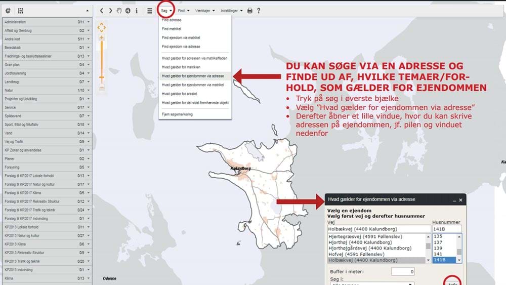 På kommunens digitale kortside kan du finde oplysninger om det område, hvor du bor, eller om andre områder, der har din interesse