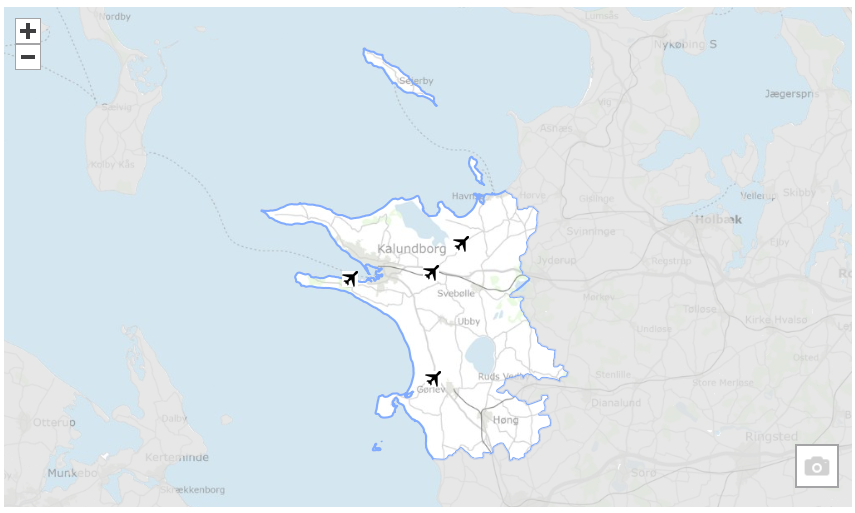 4.19.1 Flyvepladser i Kalundborg Kommune er vist på kortet 4.19.a.