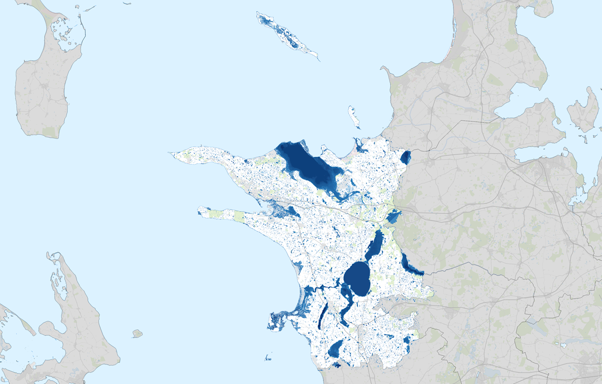Områder der er udpegede som oversvømmelsestruede fra regnvand, er udpeget på kort 5.2.b.