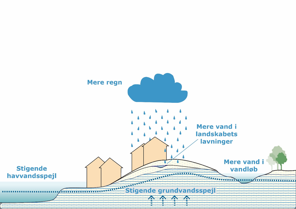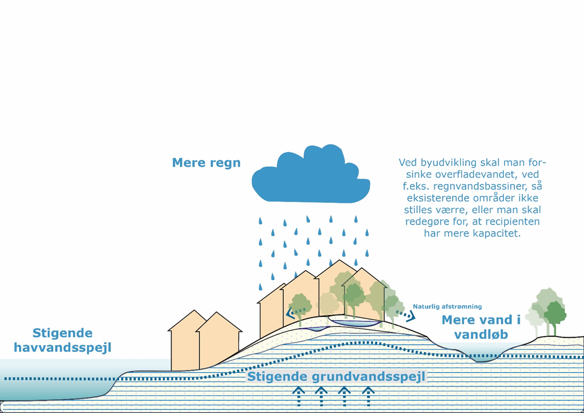 Billede 1: Billedet viser de udfordringer som klimaforandringerne medfører i forhold til vand i landskabet.