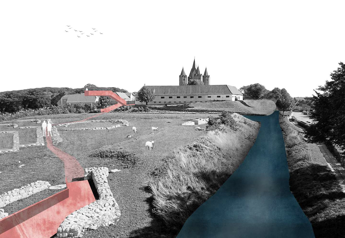 Visualisering (vejledende) af forslag til ny ankomst og udsigtspunkt ved den tidligere Vestborg i Kalundborg.
