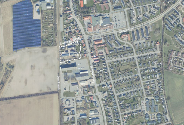 Luftfoto af lokalplanområdet og dets omgivelser.