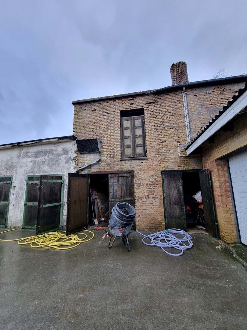 forfaldne bygninger og efterladte byggematerialer og andet rod spredt rundt på grunden.