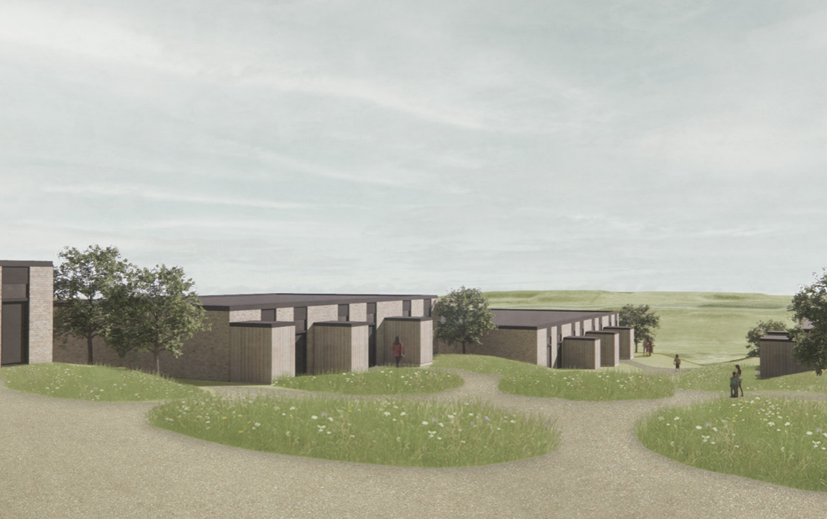 Visualisering af, hvordan bebyggelsen og rummet imellem husene kan komme til at se ud i delområde B2.