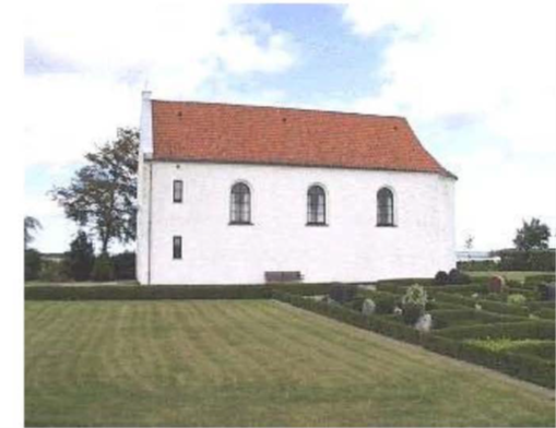 Foto: 1 Fra vest fanger frontperspektivet af den tårnløse kirke øjeblikkeligt trafikantens opmærksomhed.