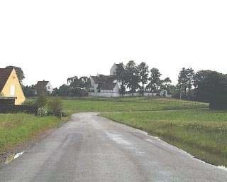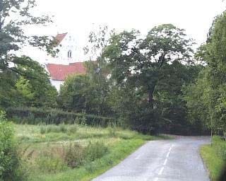 Foto: 2 Fra Solbjergvej efter Gierslev glider kirken i skjul af trækronerne, og kommer kun enkelte steder til syne.