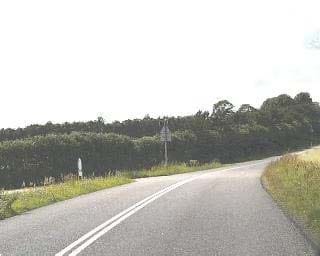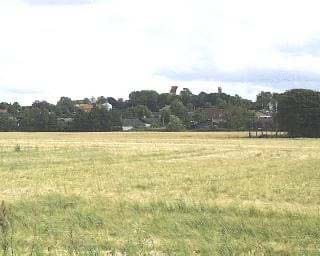 Fra Kirkemosevej ved byens skole hindre trætoppene skolens visuelle kobling til kirketårnet og byen.