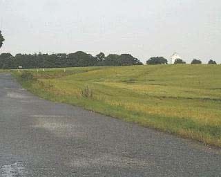 Fra syd ad Stensbjergvej: Et værdifuldt indsyn til kirken og rolige landskab.
