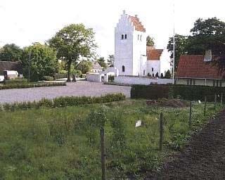 Ved passage af byen, er kirken her set fra Jyderupvej undseelig, og lader sig skjule af såvel terræn, træer og by.