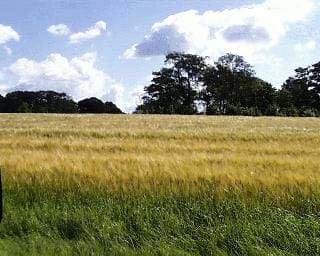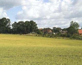 Terræn og træer dominerer indsigten til byen. Billedet er taget fra Jyderupvej nord for byen.