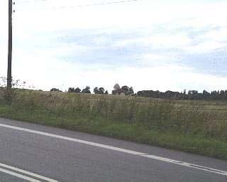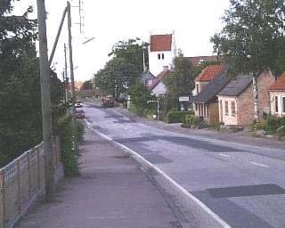 Fra Nykøbingvej i nord er der en potentiel god indsigt til kirken, men desværre forhindrer