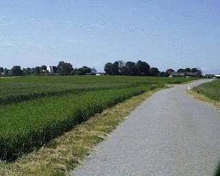 Over vejens forsvindingspunkt ser man ved ankomst til Solbjerg fra syd Blindkildevej
