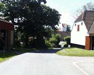 Kirketårnet markere sig fint her hvor man kører ind i byen ad Kisserupvej Landsbystemningen og nærmiljøet er slået an med gårdene der ligger helt ud til vejen.