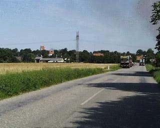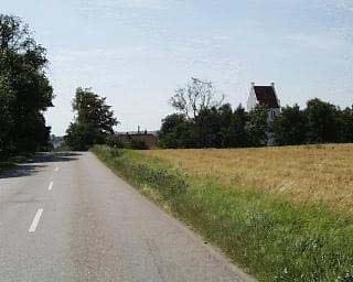 Klovbyvej nord for byen: Kirken danner en udmærket byport til Ubby for tilrejsende.