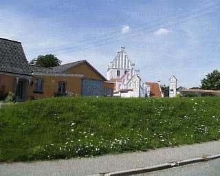 Fra øst er der først kontakt til kirken når man er inde i byen. Men her i næromgivelserne spiller kirken så til gengæld en betydelig rolle.