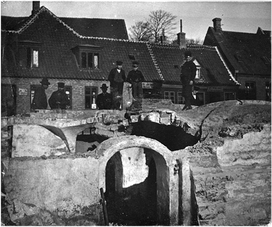 Den hvælvede kælder under Kordilgade 42, der blev nedbrudt efter branden 1901.
