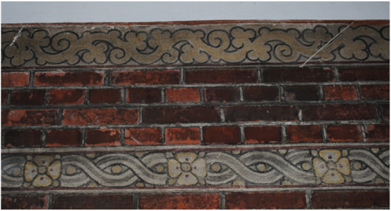 Udsnit af portfrisen i Kordilgade 38. Skønvirkefrisen tilskrives maleren Niels Termansen, der var elev af Zahrtmann.