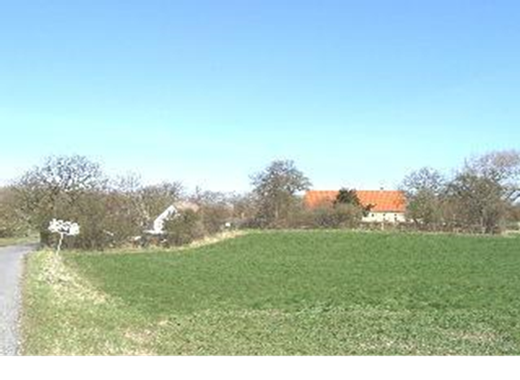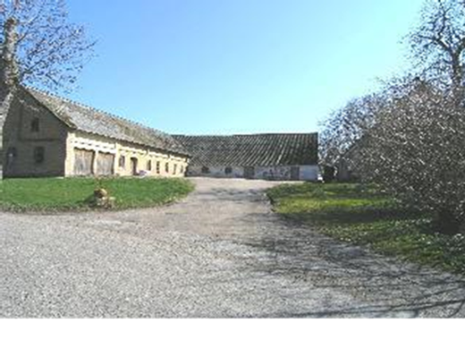 Den lille landsbys nu eneste bevarede gård ligger lidt hævet over resten af byen, fra syd.