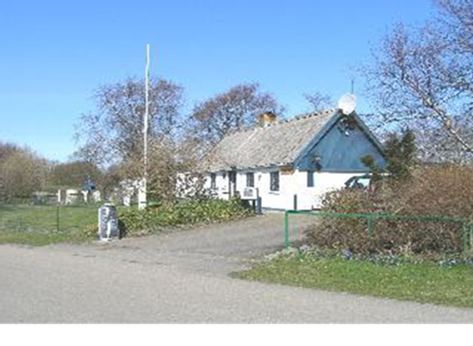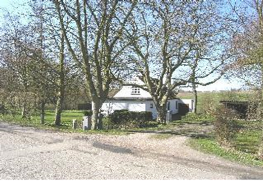 Lille hus ved vejkrydset mod det nærliggende sommerhusområde, fra syd.