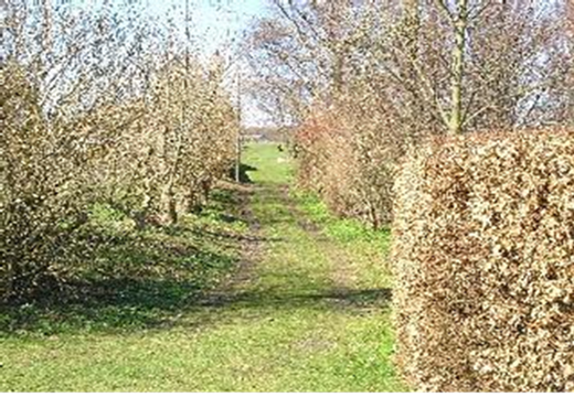 Indkørsel kantet af hække og levende hegn, fra sydøst.