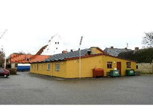 Det nedlagte andelsmejeri er opført i den sydvestlige udkant af byen, fra sydøst.