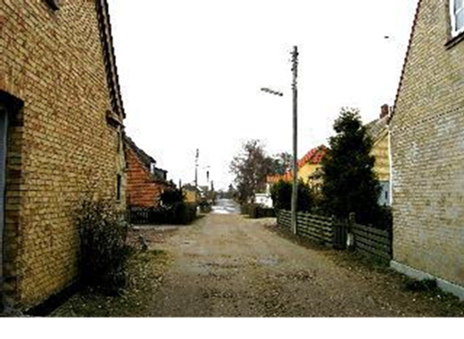 - Den gamle del af bebyggelsen omkring kirken og præstegården