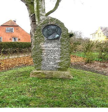Mindesten rejst for en af byens sønner i det lille anlæg på hjørnet af Vestergade og Helsingevej, fra øst.