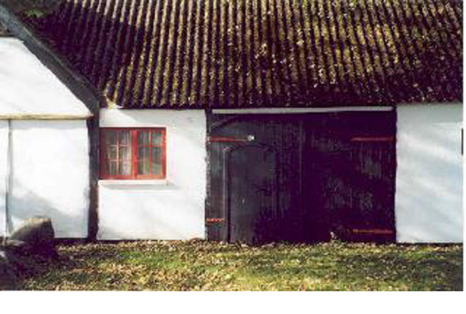 Gl. bondegård på Kongstrupvej 20. Måske den bedst bevarede på hele øen. Bruges til sommerhus. Opført i grundmur og bindingsværk. Fra ca. 1790 og fremefter. Her ses parti af østlig længe ud mod Kongstrupvej. Fin gammel ladeport.