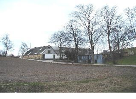 Den firelængede møllegård vest for landsbyen og møllen,