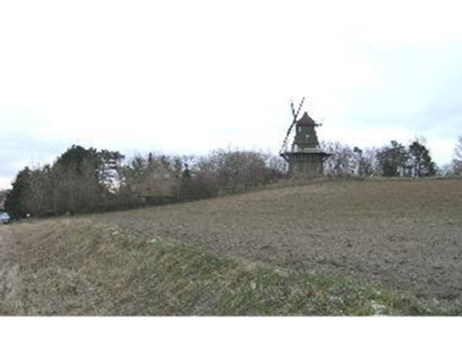 Ulstrup Mølle på et højdedrag vest for landsbyen, fra nordvest.