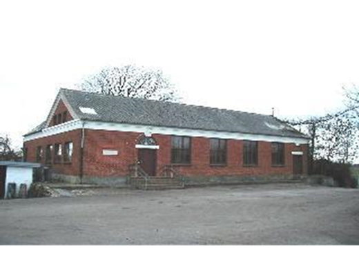 Forsamlingshuset (arkitekt Ivar Bentsen, 1883) ligger på