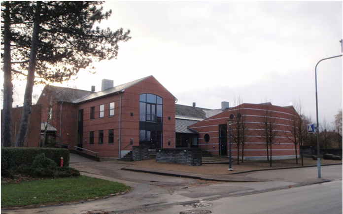 Det klassiske skolebyggeri i to etager og med længerne, der danner et åbent gårdrum.